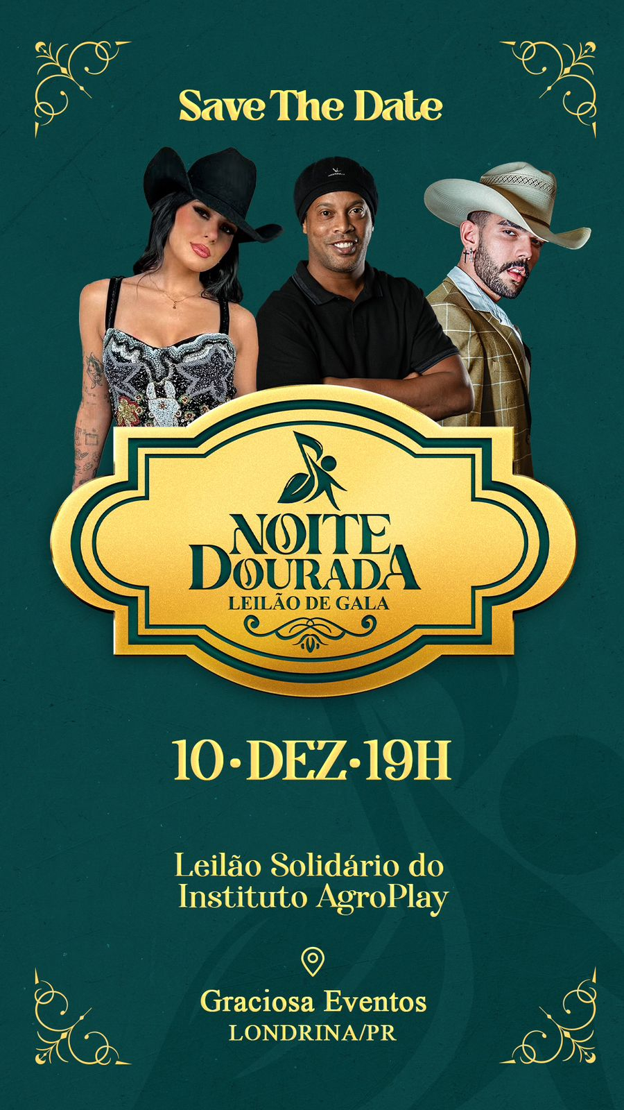 Amanhã, 10 de dezembro, às 19h, a Graciosa Eventos recebe o Noite Dourada, um leilão de gala promovido pelo Instituto Agroplay, com o propósito de transformar vidas por meio da solidariedade.