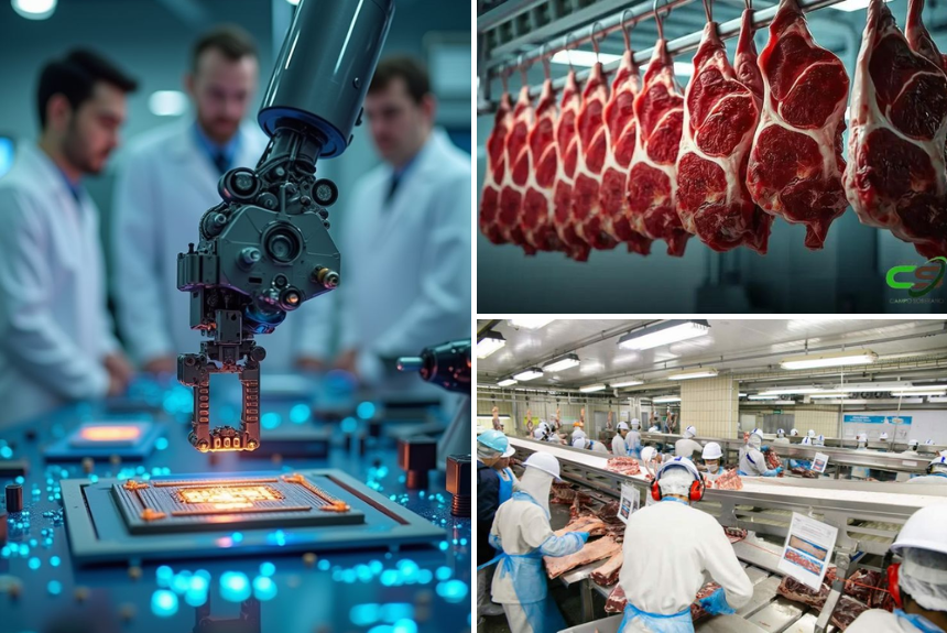 Pesquisadores da Universidade Federal de Rondonópolis (UFR), em Mato Grosso, desenvolveram um protótipo portátil capaz de avaliar a maciez da carne bovina de forma não invasiva, em tempo real, diretamente na indústria. A ferramenta utiliza espectroscopia por reflectância e câmeras multiespectrais, que projetam luz sobre a carne e captam o retorno óptico para extrair dados sobre teor de gordura, umidade e estrutura muscular. Esses dados são interpretados por algoritmos de inteligência artificial com mais de 80% de precisão.